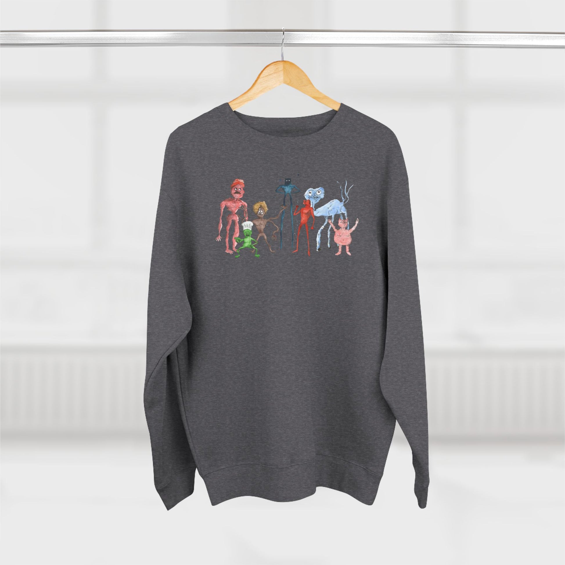 The gang got together to keep you warm. Light heather fabric and a soft fleece interior make it an easy layer for cool evenings, while the design keeps you looking your best. Wear it to slow mornings with coffee, long drives with the windows cracked, or even a first date. The relaxed fit lets you move freely; the stitched details and tear-away label keep irritation out of the picture. It settles into your rotation quickly — the kind of crewneck you reach for when you want something familiar, warm, and to remind people that you know how to put on clothes.